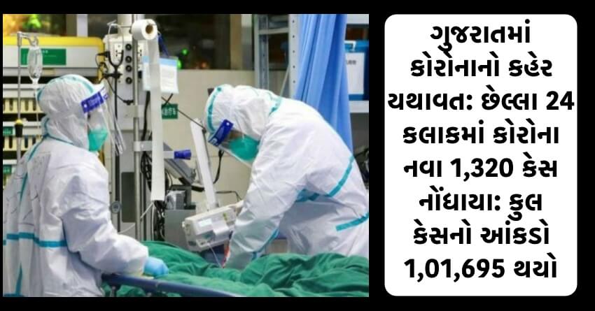 ગુજરાતમાં કોરોનાનો કહેર યથાવત: છેલ્લા 24 કલાકમાં કોરોના નવા 1,320 કેસ નોંધાયા: કુલ કેસનો આંકડો 1,01,695 થયો