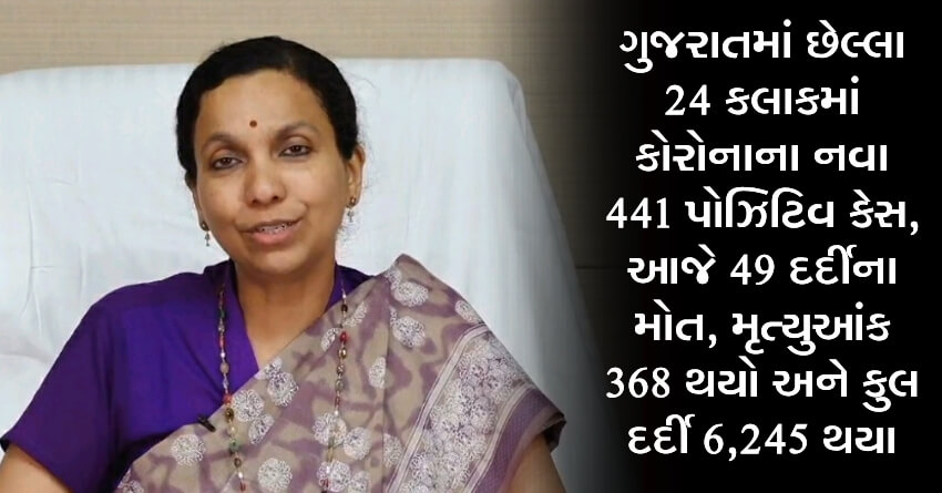 ગુજરાતમાં છેલ્લા 24 કલાકમાં કોરોનાના નવા 441 પોઝિટિવ કેસ, આજે 49 દર્દીના મોત, મૃત્યુઆંક 368 થયો અને કુલ દર્દી 6,245 થયા