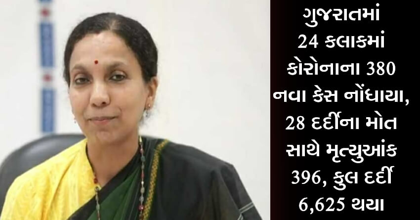 ગુજરાતમાં 24 કલાકમાં કોરોનાના 380 નવા કેસ નોંધાયા, 28 દર્દીના મોત સાથે મૃત્યુઆંક 396, કુલ દર્દી 6,625 થયા