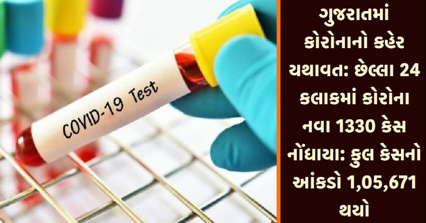 ગુજરાતમાં કોરોનાનો કહેર યથાવત: છેલ્લા 24 કલાકમાં કોરોના નવા 1330 કેસ નોંધાયા: કુલ કેસનો આંકડો 1,05,671 થયો