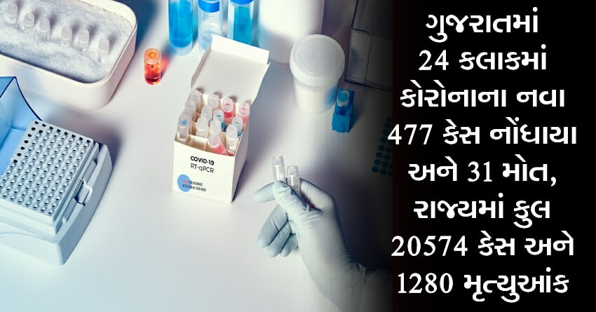ગુજરાતમાં 24 કલાકમાં કોરોનાના નવા 477 કેસ નોંધાયા અને 31 મોત, રાજ્યમાં કુલ 20574 કેસ અને 1280 મૃત્યુઆંક, 13964 દર્દીઓ ડિસ્ચાર્જ
