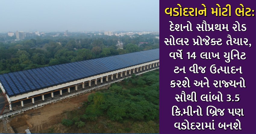 વડોદરાને મોટી ભેટ: દેશનો સૌપ્રથમ રોડ સોલર પ્રોજેક્ટ તૈયાર, વર્ષે 14 લાખ યુનિટ ટન વીજ ઉત્પાદન કરશે અને રાજ્યનો સૌથી લાંબો 3.5 કિ.મીનો બ્રિજ પણ વડોદરામાં બનશે