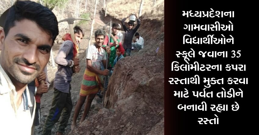 મધ્યપ્રદેશના ગામવાસીઓ વિદ્યાર્થીઓને સ્કૂલે જવાના 35 કિલોમીટરના કપરા રસ્તાથી મુક્ત કરવા માટે પર્વત તોડીને બનાવી રહ્યા છે રસ્તો
