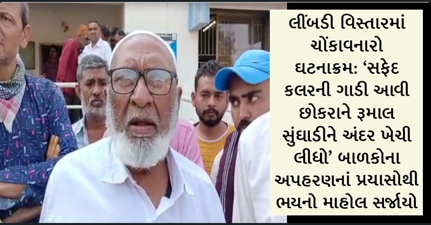 લીંબડી વિસ્તારમાં ચોંકાવનારો ઘટનાક્રમ: ‘સફેદ કલરની ગાડી આવી છોકરાને રૂમાલ સુંઘાડીને અંદર ખેચી લીધો’ બાળકોના અપહરણનાં પ્રયાસોથી ભયનો માહોલ સર્જાયો