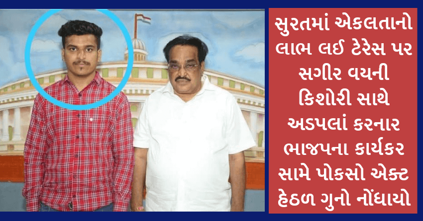 સુરતમાં એકલતાનો લાભ લઈ ટેરેસ પર સગીર વયની કિશોરી સાથે અડપલાં કરનાર ભાજપના કાર્યકર સામે પોકસો એક્ટ હેઠળ ગુનો નોંધાયો