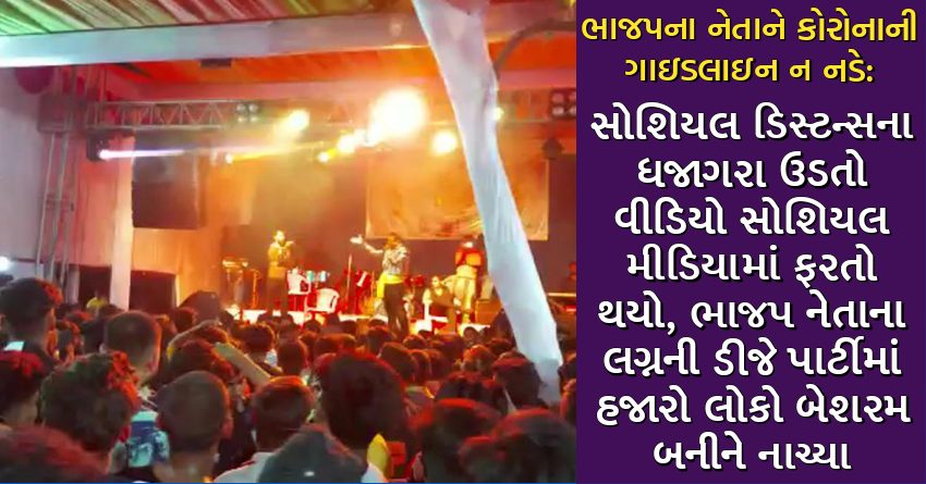 ભાજપના નેતાને કોરોનાની ગાઇડલાઇન ન નડે: સોશિયલ ડિસ્ટન્સના ધજાગરા ઉડતો વીડિયો સોશિયલ મીડિયામાં ફરતો થયો, ભાજપ નેતાના લગ્નની ડીજે પાર્ટીમાં હજારો લોકો બેશરમ બનીને નાચ્યા