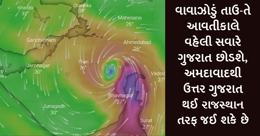 વાવાઝોડું તાઉ-તે આવતીકાલે વહેલી સવારે ગુજરાત છોડશે, અમદાવાદથી ઉત્તર ગુજરાત થઈ રાજસ્થાન તરફ જઈ શકે છે
