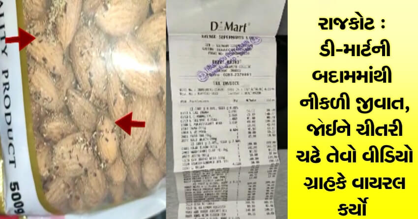 ગોંડલ રોડના D Mart નો વીડિયો વાઈરલ થતા મોલમાં એક ઉપર એક ફ્રીના ચક્કરમાં વસ્તુઓ લેવા જતા લોકોએ ખરેખર ચેતવા જેવો કિસ્સો સામે આવ્યો છે. બજાર કરતા સસ્તી બદામને નામે ફૂગ અને જીવાતવાળી બદામ D માર્ટમાં વેચાઈ રહી હોવાનો વીડિયો સોશિયલ મીડિયામાં ચકચાર મચાવી રહ્યો છે.