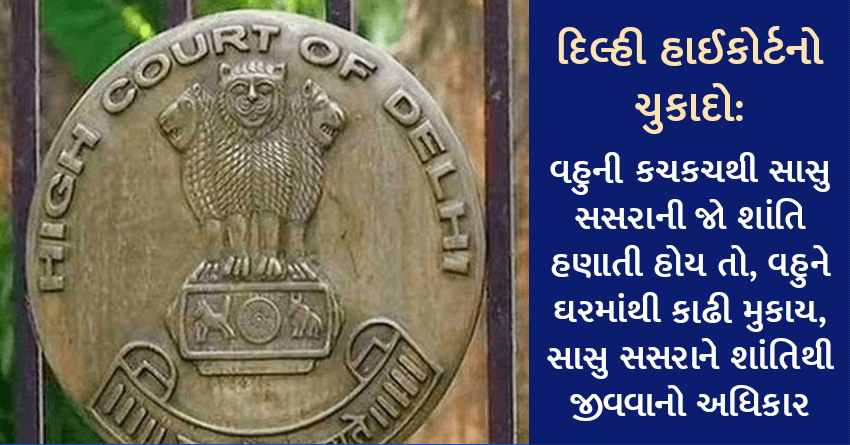 દિલ્હી હાઈકોર્ટનો ચુકાદો: વહુની કચકચથી સાસુ સસરાની જો શાંતિ હણાતી હોય તો, વહુને ઘરમાંથી કાઢી મુકાય, સાસુ સસરાને શાંતિથી જીવવાનો અધિકાર