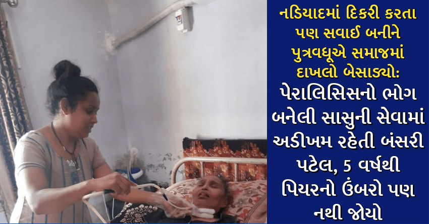 નડિયાદમાં દિકરી કરતા પણ સવાઈ બનીને પુત્રવધૂએ સમાજમાં દાખલો બેસાડ્યો: પેરાલિસિસનો ભોગ બનેલી સાસુની સેવામાં અડીખમ રહેતી બંસરી પટેલ, 5 વર્ષથી પિયરનો ઉંબરો પણ નથી જોયો