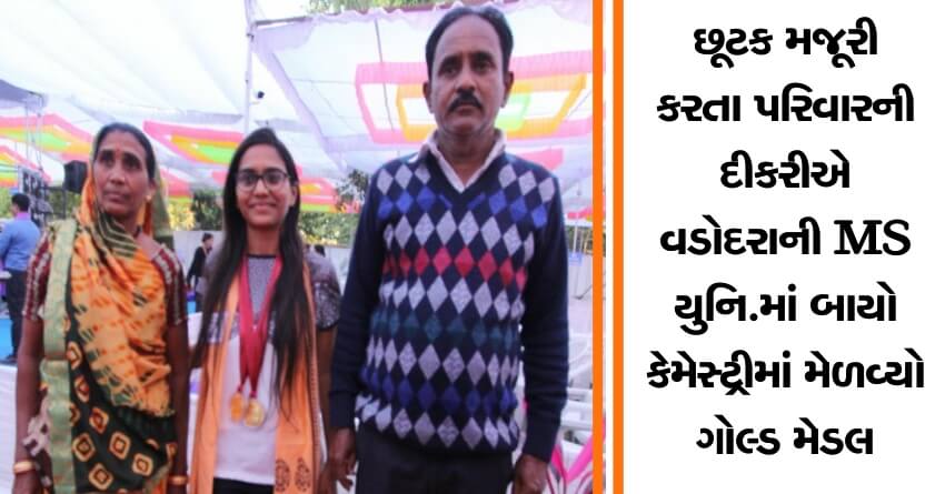 છૂટક મજૂરી કરતા પરિવારની દીકરીએ વડોદરાની MS યુનિ.માં બાયો કેમેસ્ટ્રીમાં મેળવ્યો ગોલ્ડ મેડલ