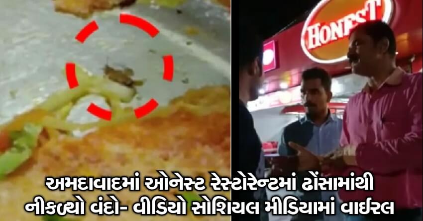 આ અંગેની વિગત એવી છેકે, મણિનગર વિસ્તારમાં આવેલી ઓનેસ્ટ રેસ્ટોરાંમાં જમવા માટે ગયેલા એક પરિવારે ઢોંસાનો ઓર્ડર આપ્યો હતો. જે ઢોંસો બનીને આવ્યા બાદ તેને ચમચી વડે ખાવા જતાં ચમચીમાં વંદો આવ્યો હતો. આ જોઇ ગ્રાહક હેબતાઇ ગયો હતો. તેણે તત્કાલ રેસ્ટોરાંના મેનેજરને જાણ કરી હતી. ત્યારે મેનેજર કહ્યું કે, તમારી વાત સાચી છે. ત્યારે મહિલાએ કહ્યું કે, અમે ઓનેસ્ટનું નામ સાંભળીને ખાવા આવીએ છીએ, પહેલો ઓર્ડર પાછો મોકલ્યો, બીજો ઓર્ડર ચલાવી લીધો અને ત્રીજા ઓર્ડરમાં પહેલા કોળિએ તેના મોઢાંમાં જતાં મારું ધ્યાન ગયું. જો ખાધો હોત તો શું થાત? અહીં 10 જેટલી ભાજીપાંવની લારી ચાલે છે અમે ઓનેસ્ટમાં કેમ ખાઇએ છીએ. તમારું ખાવાનું બિલકુલ હાઇજેનિક નથી.