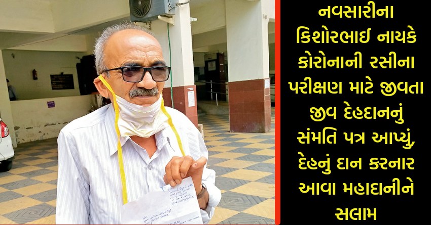 નવસારીના કિશોરભાઈ નાયકે કોરોનાની રસીના પરીક્ષણ માટે જીવતા જીવ દેહદાનનું સંમતિ પત્ર આપ્યું, દેહનું દાન કરનાર આવા મહાદાનીને સલામ
