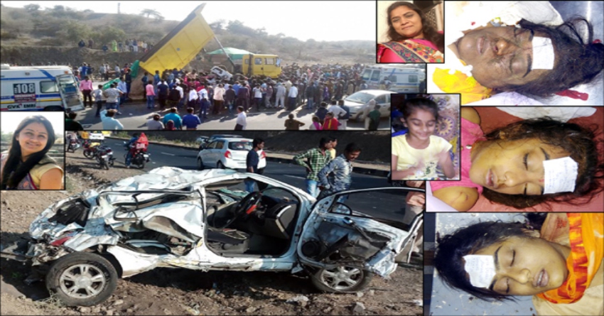 રાજેશભાઇના બહેન રીટાબેન નિલેષભાઇ ડોબરીયા (ઉ.૩૨) અને તેની દિકરી ત્રિશા નિલેાભાઇ ડોબરીયા (ઉ.૭)ની અંતિમયાત્રા આજે સવારે પડધરીના ખામટા ગામેથી નીકળી હતી અને રાજેશભાઇના પત્નિ નિધીબેન ગજેરા (ઉ.૩૦)ની અંતિમયાત્રા ન્યુ ગોપવંદનામાંથી નીકળી હતી. આ વખતે કરૂણ દ્રશ્યો સર્જાયા હતાં. અમદાવાદ-રાજકોટ હાઇવે પર બામણબોર નજીક રવિવારે બપોરે રેતી ભરેલા નવેનવા ડમ્પરે કાર નં. જીજે૩ડીજી-૯૧૧૪ને ઉલાળતાં કાર ડિવાઇડર પર ચડી ગઇ હતી અને પાછળ ડમ્પર કાર ઉપર ચડી ગયું હતું. કારના પાછળના ભાગનો બૂકડો બોલી જતાં અંદર બેઠેલા રાજેશભાઇ ગજેરા સહિત સાત સભ્યો દબાઇ ગયા હતાં. દેકારો મચી જતાં લોકો ભેગા થઇ ગયા હતાં અને મહામહેનતે ફસાયેલા તમામને બહાર કાઢ્યા હતાં. જેમાં રાજેશભાઇ, તેમના મતા શારદાબેન હેમતભાઇ ગજેરા (ઉ.૫૦), પુત્ર પ્રિયાંજ ગજેરા (ઉ.૪) અને ભાણેજ હેનીલ નિલેષભાઇ ડોબરીયા (ઉ.૬)નો ચમત્કારીક બચાવ થયો હતો. જ્યારે રાજેશભાઇના પત્નિ નિધી ગજેરા (ઉ.૩૦), બહેન રીટાબેન નિલેષભાઇ ડોબરીયા (ઉ.૩૨) અને ભાણેજ ત્રિશા નિલેષભાઇ ડોબરીયા (ઉ.૭)ને ગંભીર ઇજાઓ થતાં રાજકોટ સિવિલ હોસ્પિટલમાં ખસેડાયા હતાં.