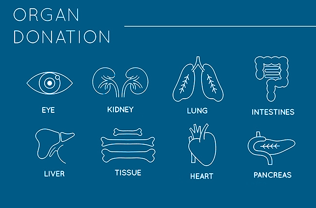 આપણે દાન કરી શકીએ એવા અંગોમાં કિડની , ફેફસા, હૃદય, આંખો, લીવર, નાનું આંતરડું, ચામડીના કોષો, હાડકાના કોષો, હૃદયના વાલ્વ, નસ વગેરે અંગોનું દાન કરી શકાય છે.