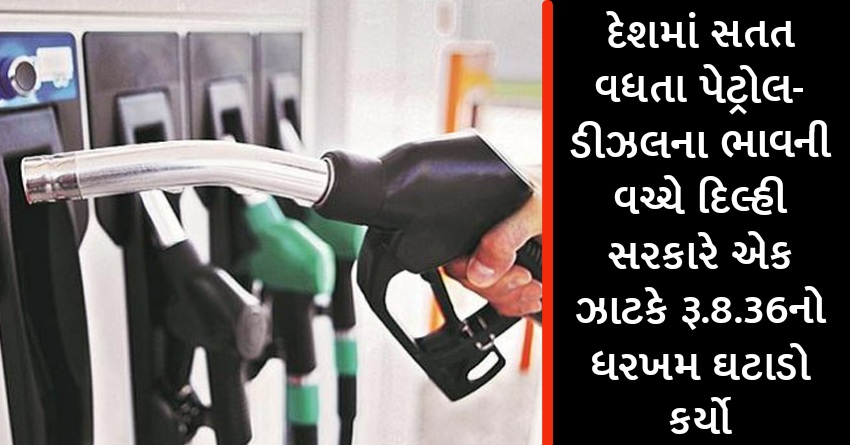 દેશમાં સતત વધતા પેટ્રોલ-ડીઝલના ભાવની વચ્ચે દિલ્હી સરકારે એક ઝાટકે રૂ.8.36નો ધરખમ ઘટાડો કર્યો