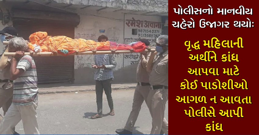 પોલીસનો માનવીય ચહેરો ઉજાગર થયો: વૃદ્ધ મહિલાની અર્થીને કાંધ આપવા માટે કોઈ પાડોશીઓ આગળ ન આવતા પોલીસે આપી કાંધ