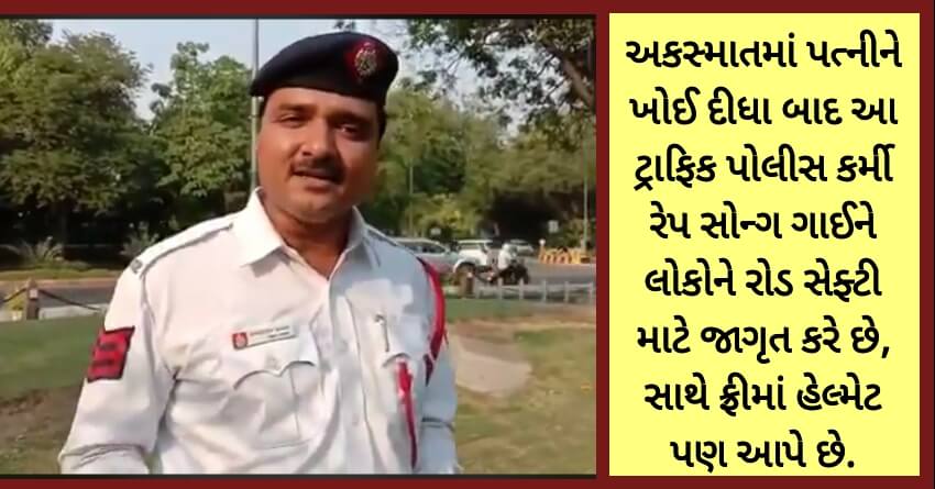 અકસ્માતમાં પત્નીને ખોઈ દીધા બાદ આ ટ્રાફિક પોલીસ કર્મી રેપ સોન્ગ ગાઈને લોકોને રોડ સેફ્ટી માટે જાગૃત કરે છે, સાથે ફ્રીમાં હેલ્મેટ પણ આપે છે.