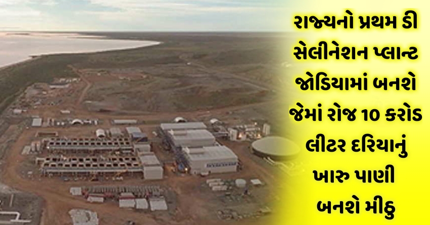 રાજ્યનો પ્રથમ ડી સેલીનેશન પ્લાન્ટ જોડિયામાં બનશે જેમાં રોજ 10 કરોડ લીટર દરિયાનું ખારુ પાણી બનશે મીઠુ