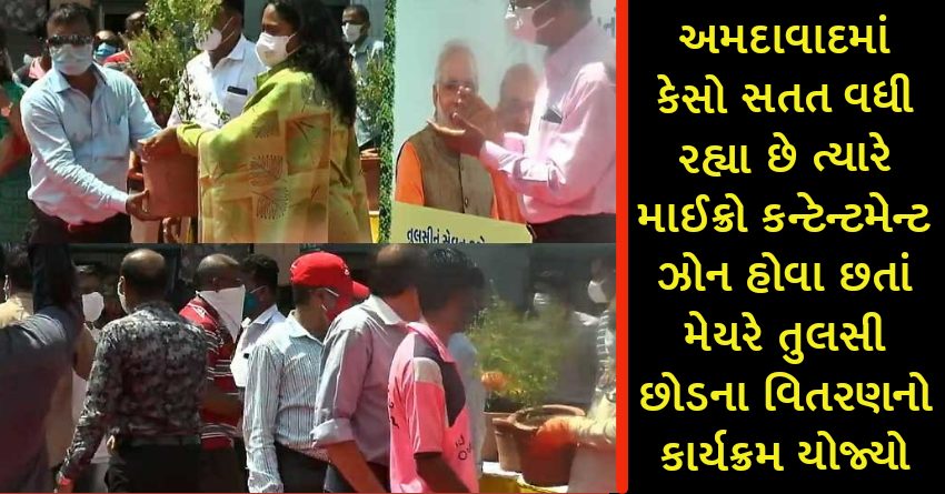 અમદાવાદમાં કેસો સતત વધી રહ્યા છે ત્યારે માઈક્રો કન્ટેન્ટમેન્ટ ઝોન હોવા છતાં મેયરે તુલસી છોડના વિતરણનો કાર્યક્રમ યોજ્યો