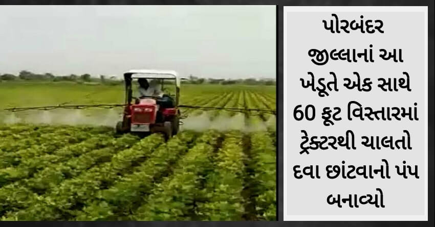 પોરબંદર જીલ્લાનાં આ ખેડૂતે એક સાથે 60 ફૂટ વિસ્તારમાં ટ્રેક્ટરથી ચાલતો દવા છાંટવાનો પંપ બનાવ્યો