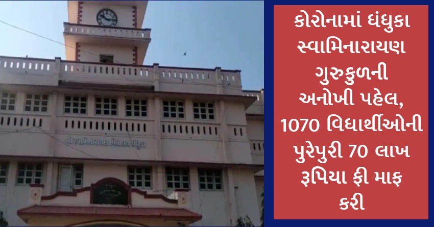 કોરોનામાં ધંધુકા સ્વામિનારાયણ ગુરુકુળની અનોખી પહેલ, 1070 વિધાર્થીઓની પુરેપુરી 70 લાખ રૂપિયા ફી માફ કરી