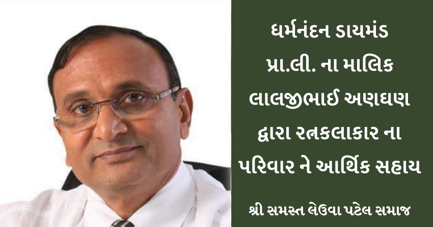 કર્મચારીના પરિવાર ને આર્થિક સહાય કરીને લાલજીભાઈ એ ખુબજ સરસ કામ કર્યું છે તે બદલ શ્રી સમસ્ત લેઉવા પટેલ સમાજ તેમનો ખુબ ખુબ આભાર પ્રગટ કરે છે.