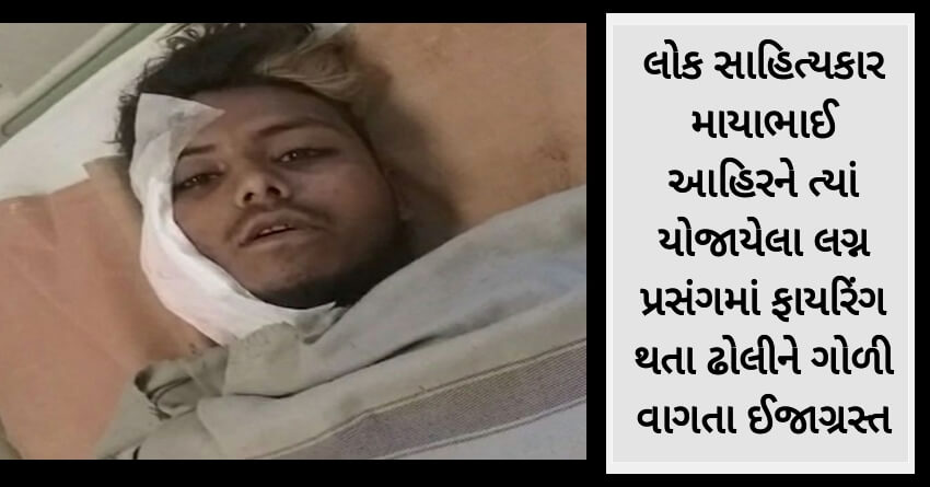 લોક સાહિત્યકાર માયાભાઈ આહિરને ત્યાં યોજાયેલા લગ્ન પ્રસંગમાં ફાયરિંગ થતા ઢોલીને ગોળી વાગતા ઈજાગ્રસ્ત