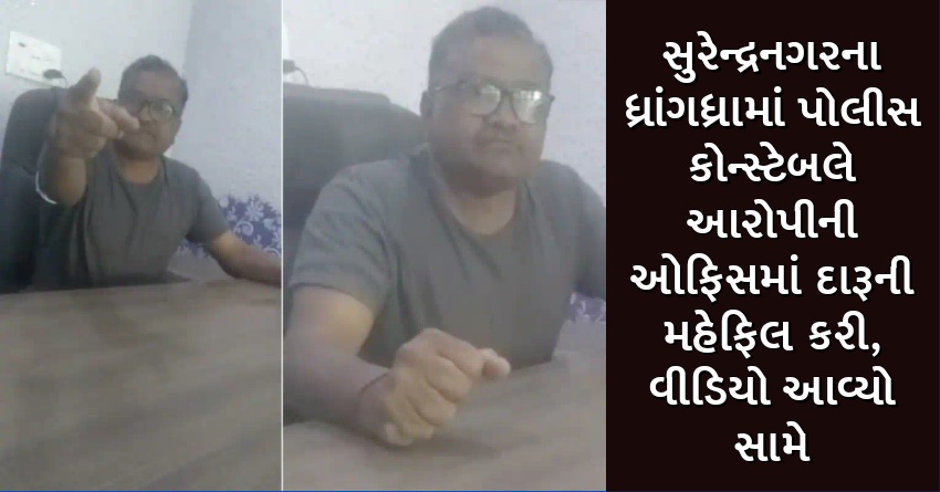 સુરેન્દ્રનગરના ધ્રાંગધ્રામાં પોલીસ કોન્સ્ટેબલે આરોપીની ઓફિસમાં દારૂની મહેફિલ કરી, વીડિયો આવ્યો સામે
