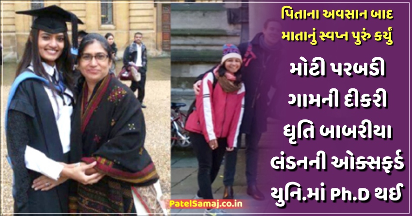 મોટી પરબડી ગામની દીકરી ધૃતિ બાબરીયા લંડનની ઓક્સફર્ડ યુનિ.માં Ph.D થઈ