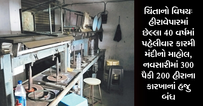 ચિંતાનો વિષયઃ હીરાવેપારમાં છેલ્લા 40 વર્ષમાં પહેલીવાર કારમી મંદીનો માહોલ, નવસારીમાં 300 પૈકી 200 હીરાના કારખાનાં હજુ બંધ