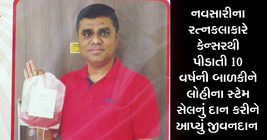 નવસારીના રત્નકલાકારે કેન્સરથી પીડાતી 10 વર્ષની બાળકીને લોહીના સ્ટેમ સેલનું દાન કરીને આપ્યું જીવનદાન