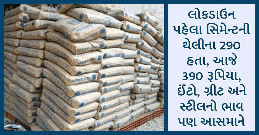 લોકડાઉન પહેલા સિમેન્ટની થેલીના 290 હતા, આજે 390 રૂપિયા, ઈંટો, ગ્રીટ અને સ્ટીલનો ભાવ પણ આસમાને