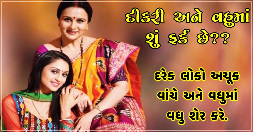 દીકરી અને વહુમાં શું ફર્ક છે ?? ચાલો જોઈએ મસ્ત મજાનો આર્ટિકલ. બધાને વાંચવો ખૂબ જ ગમશે. દીકરીએ એક જ છે પણ એને કેટલી બધી રીતે જોવામાં આવે છે અને પારખવામાં આવે છે.