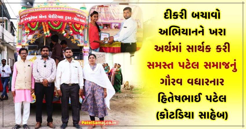 દીકરી બચાવો અભિયાનને ખરા અર્થમાં સાર્થક કરી સમસ્ત પટેલ સમાજનું ગૌરવ વધારનાર હિતેષભાઈ પટેલ (કોટડિયા સાહેબ)