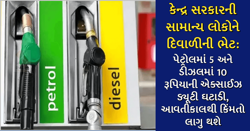 કેન્દ્ર સરકારની સામાન્ય લોકોને દિવાળીની ભેટ: પેટ્રોલમાં 5 અને ડીઝલમાં 10 રૂપિયાની એક્સાઈઝ ડ્યૂટી ઘટાડી, આવતીકાલથી કિંમતો લાગુ થશે