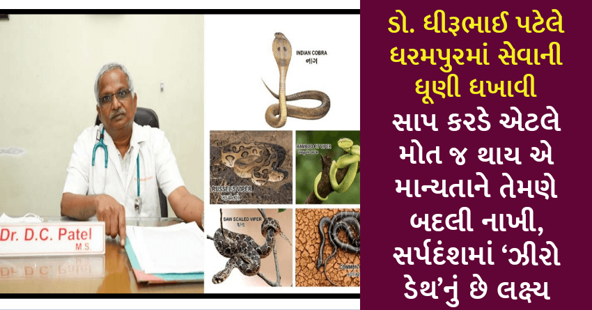 ડો. ધીરૂભાઈ પટેલે ધરમપુરમાં સેવાની ધૂણી ધખાવી, સાપ કરડે એટલે મોત જ થાય એ માન્યતાને તેમણે બદલી નાખી, સર્પદંશમાં ‘ઝીરો ડેથ’નું છે લક્ષ્ય