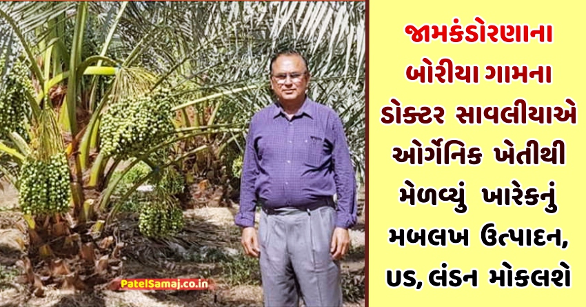 જામકંડોરણાના બોરીયા ગામના તબીબ ડો.હરદાસભાઈએ પોતાના ખેતરમાં ખારેકની ઓર્ગેનિક ખેતી કરી મબલખ કમાણી કરીને અન્ય ખેડૂતોને ઓર્ગેનીક ખેતી કરવા માટે પ્રેરણા આપી રહ્યા છે. ડો.હરદાસભાઈ સાવલીયા ખેતીમાં બદલાવ લાવવા માટે પોતાની આગવી સૂઝથી બોરીયા ગામની પોતાની વાડીએ ઓર્ગેનીક ખારેકની ખેતી કરવાનું નક્કી કરી ખારેકના રોપાઓ પોતાની વાડીએ વાવ્યા અને ઓર્ગેનીક ખાતર જીવામૃત ખાતર એટલે કે તેમા છાણ, ગૌમુત્ર, ગોળ, ચણાનો લોટ વગેરે પલાળીને ખાતર બનાવી ઓર્ગેનીક ખાતરથી ખારેકની ખેતી ચાલુ કરી અને તેમા કેમીકલવાળી દવાનો ઉપયોગ કર્યા વગર ખારેકની ઓર્ગેનીક ખેતી કરીને ત્રીજા વર્ષથી મબલખ ઉત્પાદન મેળવ્યું છે.