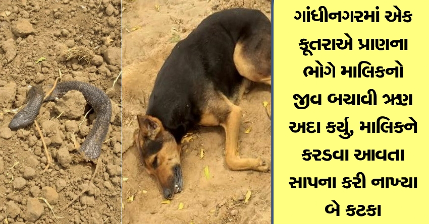 ગાંધીનગરમાં એક કૂતરાએ પ્રાણના ભોગે માલિકનો જીવ બચાવી ઋણ અદા કર્યુ, માલિકને કરડવા આવતા સાપના કરી નાખ્યા બે કટકા