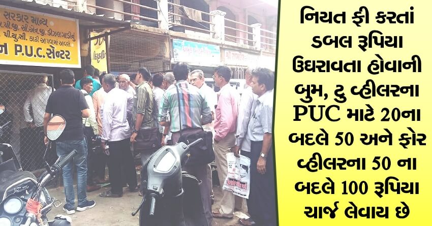 નિયત ફી કરતાં ડબલ રૂપિયા ઉઘરાવતા હોવાની બુમ, ટુ વ્હીલરના PUC માટે 20ના બદલે 50 અને ફોર વ્હીલરના 50 ના બદલે 100 રૂપિયા ચાર્જ લેવાય છે