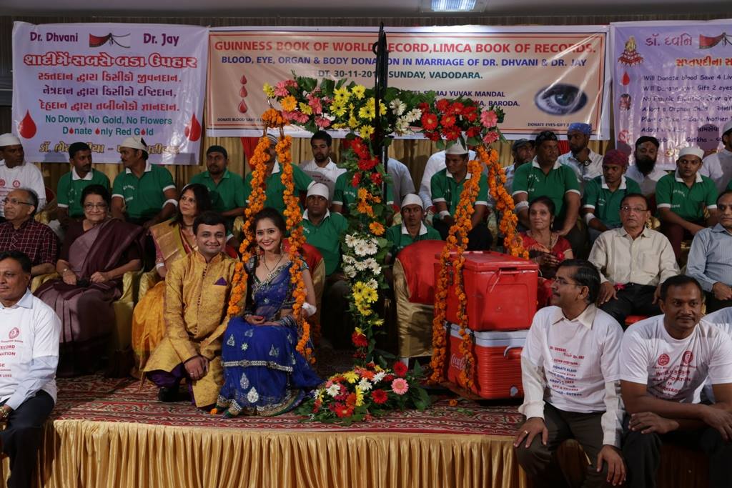 સેવાભાવી ડો. ભેંસાણિયાએ એકલપંડે દીકરીના લગ્નમાં વરકન્યા સહિત ૩૨૮ આમંત્રિતો પાસે લગ્ન પહેલાં રક્તદાન કરાવી ગિનેસ બૂકમાં કામથી નામ નોંધાવ્યું! જમાઇ દીકરીને મેડિકલી હેલ્ધી સપ્તપદીના સાત ફેરા (વૃક્ષારોપણથી ચક્ષુદાન, ભૃ્રણ હત્યા વિરોધથી ગુટકાતમાકુ મુક્તિ!)ના શપથ લેવડાવ્યા! મહેશભાઇ પણ પાંચમો ફેરો સમુહ લગ્નમાં વરના મા-બાપનો પુત્રવધૂને દીકરી ગણી ભૃણહત્યા ન કરવાની પ્રતિજ્ઞાાનો લેવડાવે છે! ભાવતા ભોજનિયાં જમતા પહેલાં રક્તદાનથી ચાંલ્લો કરી દેવાની સાવ અનોખી પ્રથા જે અપવાદને બદલે આદત બને તો લગ્નનું મંગલ સાચે બીજાને જીવન આપે. કન્યાદાન પછી, રક્તદાન પહેલાં!