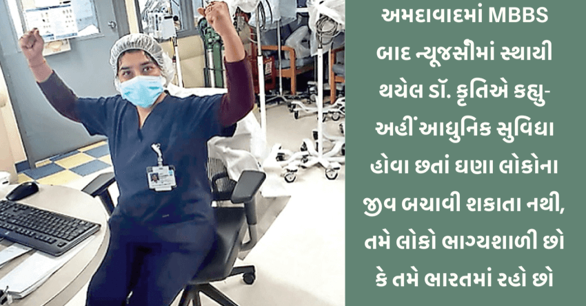 અમદાવાદમાં MBBS બાદ ન્યૂજર્સીમાં સ્થાયી થયેલ ડૉ. કૃતિએ કહ્યુ- અહીં આધુનિક સુવિધા હોવા છતાં ઘણા લોકોના જીવ બચાવી શકાતા નથી, તમે લોકો ભાગ્યશાળી છો કે તમે ભારતમાં રહો છો