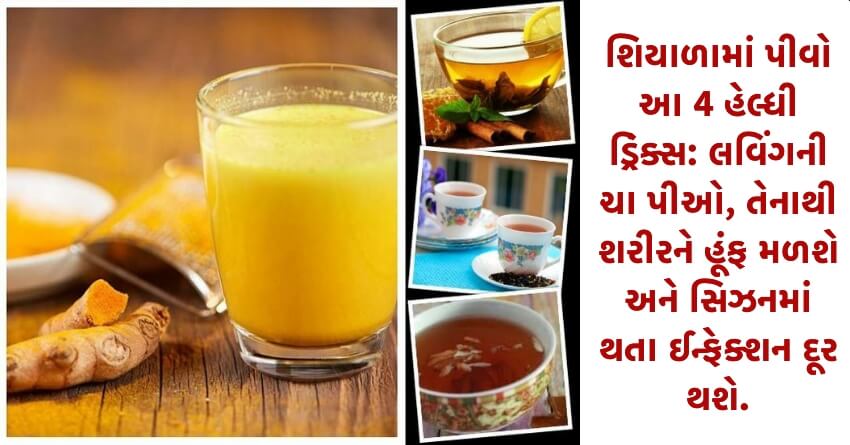 કડકડતી ઠંડીમાં શરીરને ગરમ રાખવા માટે માત્ર ચા કે કોફી નહીં પરંતુ સરળતાથી બનતા કેટલાક હેલ્ધી ડ્રિંક્સ પીવો. તેનાથી શરીરને હૂંફ મળશે અને આ સિઝનમાં થતા ઈન્ફેક્શન દૂર થશે. અહીં જાણો ચાર ડ્રિંક્સની રેસિપી અને તેનાથી થતા ફાયદા વિશે..