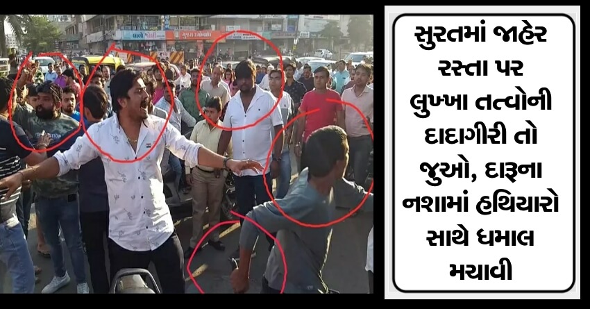 સુરતમાં જાહેર રસ્તા પર લુખ્ખા તત્વોની દાદાગીરી તો જુઓ, દારૂના નશામાં હથિયારો સાથે ધમાલ મચાવી