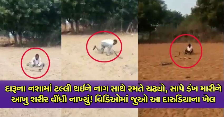 રાજસ્થાનના દૌસા જિલ્લાની આ વાત છે. ત્યાંના ગુઢાકટલા ગામથી એક ધબકારા વધારનારો વીડિયો સામે આવ્યો છે. દારૂના નશામાં ટલ્લી થઈને એક શખ્સ સાપ સાથે રમત કરી રહ્યો છે. અરે સાપને પકડી પણ લીધો હતો.