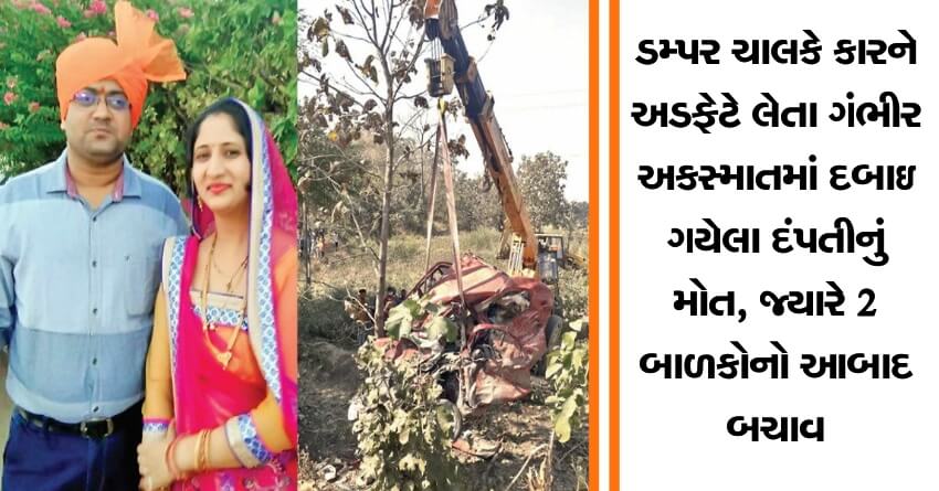 ડમ્પર ચાલકે કારને અડફેટે લેતા ગંભીર અકસ્માતમાં દબાઇ ગયેલા દંપતીનું મોત, જ્યારે 2 બાળકોનો આબાદ બચાવ