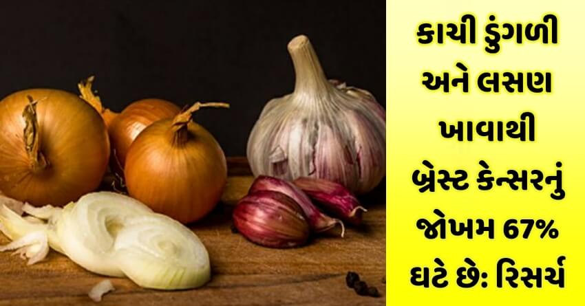 આ રિસર્ચમાં સામેલ 346 મહિલાઓ જે કાચી ડુંગળી અને લસણનું સેવન કરતી હતી તેમનાં કેન્સરમાં કન્ટ્રોલ જોવા મળ્યો હતો. આ રિસર્ચમાં પુરવાર થયું છે કે કાચી ડુંગળી અને લસણ ખાવાથી બ્રેસ્ટ કેન્સરનું જોખમ 67% ઘટાડી શકાય છે.