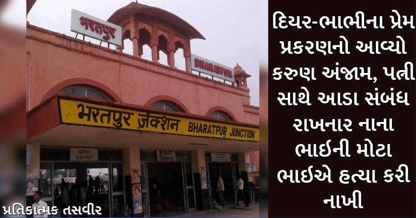 રાજસ્થાનના ભરતપુરમાંથી ભાભી-દિયરના સંબંધને શરમમાં પાડે એવી દર્દનાક ઘટના સામે આવી છે. જિલ્લાના એક ગામમાં રહેતા પરિવારના નાના પુત્રની હત્યાના કેસથી સમગ્ર વિસ્તારમાં અંજપો પ્રસરી ગયો છે. અહીં દિયર અને ભાભીના પ્રેમ સંબંધની જાણ મોટા ભાઇને થતાં એેણે નાના ભાઇની કરુણ હત્યા કરી નાંખી છે. નાના ભાઇની હત્યા કરવાના આરોપસર મોટા ભાઇની પોલીસે ધરપકડ કરી લીધી છે.