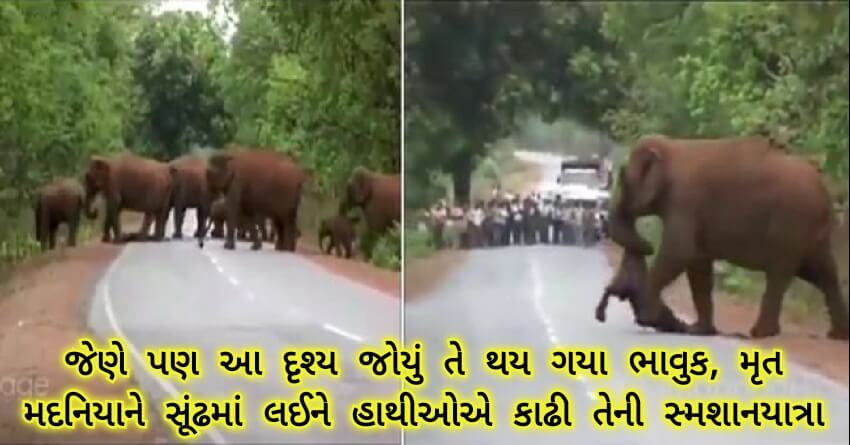 જેણે પણ આ દૃશ્ય જોયું તે થય ગયા ભાવુક, મૃત મદનિયાને સૂંઢમાં લઈને હાથીઓએ કાઢી તેની સ્મશાનયાત્રા