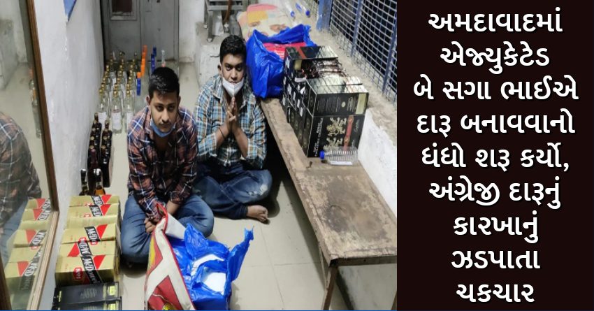 અમદાવાદમાં એજ્યુકેટેડ બે સગા ભાઈએ દારૂ બનાવવાનો ધંધો શરૂ કર્યો, અંગ્રેજી દારૂનું કારખાનું ઝડપાતા ચકચાર